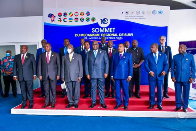 Sept Chefs d’Etat participent, depuis la mi-journée de ce jeudi 24 février 2022, au sommet sur l’Accord-cadre d’Addis-Abeba à la Cité de l’Union Africaine à Kinshasa (RDC).