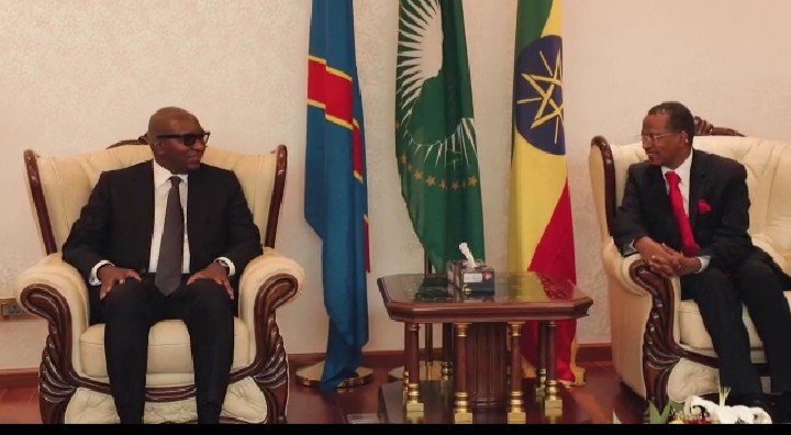 « Je suis venu ici à Addis-Abeba sur instruction de son Excellence Monsieur le Président de la République, Félix Antoine Tshisekedi qui, en sa qualité de président de l’Union africaine, a tenu à marquer sa présence à l’occasion de l’installation du Gouvernement ici en République fédérale démocratique d’Éthiopie. Sa présence a été marquée par ma personne. Nous avons apporté des salutations au peuple frère d’Éthiopie, à madame la Présidente, Mengistu Haile Mariam. Nous avons aussi apporté des messages de félicitations au Premier Ministre, Abiy Ahmed, à l’occasion justement de l’installation de son Gouvernement issu des élections qui ont été organisées », a-t-il affirmé, souhaitant bon vent à ce Gouvernement qui a autant de défis à relever.