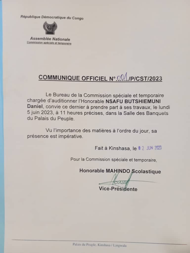 Le député national Daniel Safu est attendu impérativement devant une commission ad hoc à la Chambre basse du parlement, ce lundi 5 juin 2023. Viendra ? Viendra pas? Voilà une question que l’on se pose tant cet élu du peuple est introuvable, mieux invisible, depuis deux semaines.