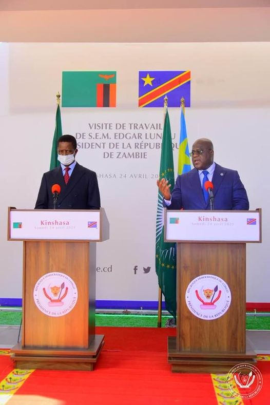 Arrivé à Kinshasa ce samedi, le Président de la République de Zambie Edgar Chagwa Lungu,  était reçu en audience, à la cité de l’Union Africaine, avec son homologue congolais, Félix Antoine Tshisekedi Tshilombo. Après les entretiens, les deux chefs d’État se sont exprimés à la presse.
