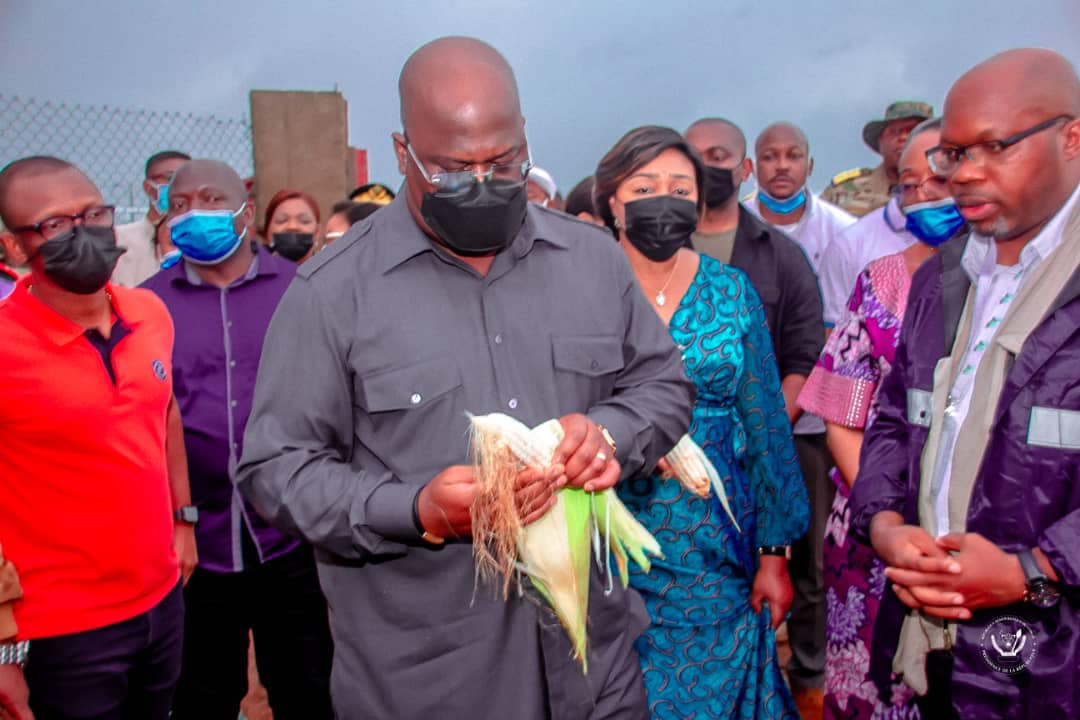 Dans sa vision de promouvoir l’autosuffisance alimentaire grâce aux initiatives locales modernes, le Président Tshisekedi a voulu personnellement se rassurer de la capacité de production de ce site agricole, qui se trouve encore dans sa phase embryonnaire. En deux ans d’existence, la base agricole de Nkwadi fonctionne grâce au partenariat avec la firme Bio Agri Business ( BAB), qui exécute le projet pour le compte du gouvernement, avec le concours de la MIBA, à travers sa minoterie pour la transformation de la récolte en semoule de maïs de qualité supérieure.