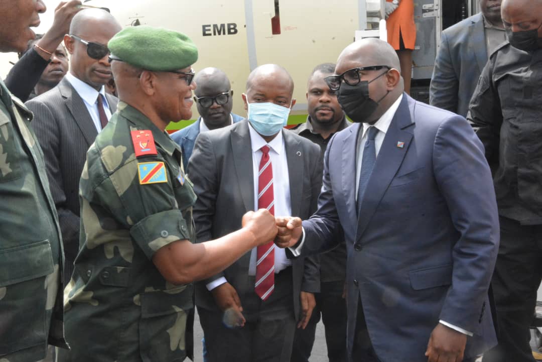 « Cette visite s’inscrit dans le cadre de notre action gouvernementale qui démontre d’abord notre attachement à cette province du Nord-Kivu et notre attachement aux populations de cette province. Ça s’inscrit aussi dans notre détermination pour ramener la paix dans cette partie du pays. Nous sommes venus avec une forte délégation gouvernementale, accompagné du Chef d’État-major Général des FARDC, ainsi que du Commissaire général de la PNC, mais aussi il y a une délégation de l’Assemblée nationale et du Sénat dans le cadre des évaluations que nous faisons avec eux au niveau du parlement. Et ça sera l’occasion pour nous de passer en revue justement le niveau d’avancement de l’état de siège mais aussi associé à cette mission, d’autres activités notamment la visite des sites qui seront visités par sa sainteté le Pape François pendant qu’il sera ici au mois de juillet », a déclaré Jean-Michel Sama Lukonde.