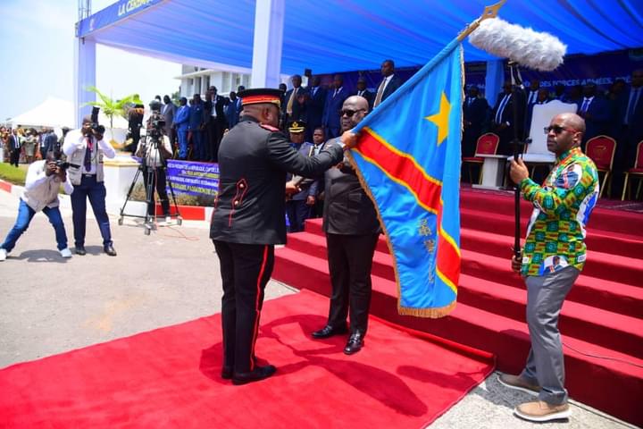 » Lieutenant-Général Tshiwewe, je te donne cet étendard, symbole de commandement. Je te demande de le défendre jusqu’au sacrifice suprême « ,