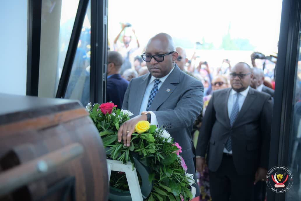 « Ici c’est une occasion de venir rendre hommage à Patrice Emery Lumumba, premier Premier Ministre de la République démocratique du Congo, première fois après que les reliques de son auguste personne aient été restituées. Nous avions été ici au mois de juin de l’année passée pour consacrer ce nouveau mausolée où désormais il repose à jamais. Aujourd’hui, nous voulons l’honorer, déposer cette gerbe des fleurs, lui rendre hommage maintenant qu’il est chez lui à la maison, ici en République démocratique du Congo. C’était une occasion pour nous non seulement de commémorer ce moment une fois de plus avec la famille Lumumba mais avec toute la population congolaise. Comme vous le savez, c’est l’un de nos héros, on devrait l’honorer comme tel. De lui, je vais tout simplement rappeler une phrase qui disait que l’histoire de l’Afrique ne serait réellement bien dite que lorsqu’elle serait écrite par ses propres enfants et que ce serait une histoire de gloire. Je crois qu’ici en RDC, nous nous approprions cette recommandation qui était la sienne pour désormais écrire notre histoire de la République démocratique du Congo. C’est une histoire grande et glorieuse. Je suis venu en représentation de son Excellence Monsieur le Président de la République, Félix Antoine Tshisekedi Tshilombo pour cet hommage. Je suis heureux pour ce moment que j’ai passé ici en communion avec la population congolaise « , a dit en substance le Chef du Gouvernement.
