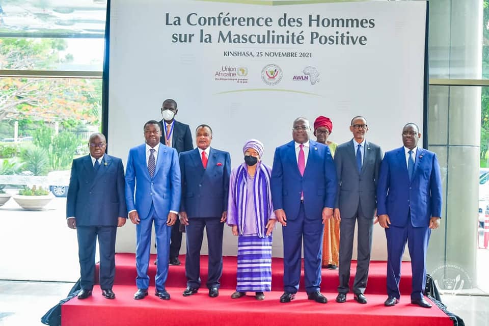 Sous le leadership de Son Excellence Monsieur Félix Antoine Tshisekedi Tshilombo, Président de la République démocratique du Congo et Président en exercice de l’Union africaine, Nous, les Chefs d’Etat et de Gouvernement des Etats membres de l’Union africaine, l’Afrique du Sud, Ethiopie, Ghana, Kenya, République du Congo, République démocratique du Congo, Rwanda, Sénégal, Tanzanie, Togo, présents lors de la Conférence des hommes sur la masculinité positive dans le leadership pour l’élimination des violences faites aux femmes et aux filles (VFFF) en Afrique, à Kinshasa, en République démocratique du Congo, le 25 novembre 2021, à l’occasion de la Journée internationale pour l’élimination de la violence à l’égard des femmes et des filles ;