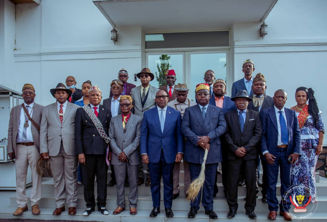 Le Premier Ministre, Jean-Michel Sama Lukonde Kyenge a reçu en audience, ce samedi 5 mars 2022, dans son cabinet de travail à la primature, une délégation des autorités traditionnelles de la RDC regroupées au sein de l’Alliance nationale des Autorités traditionnelles du Congo (ANATC).