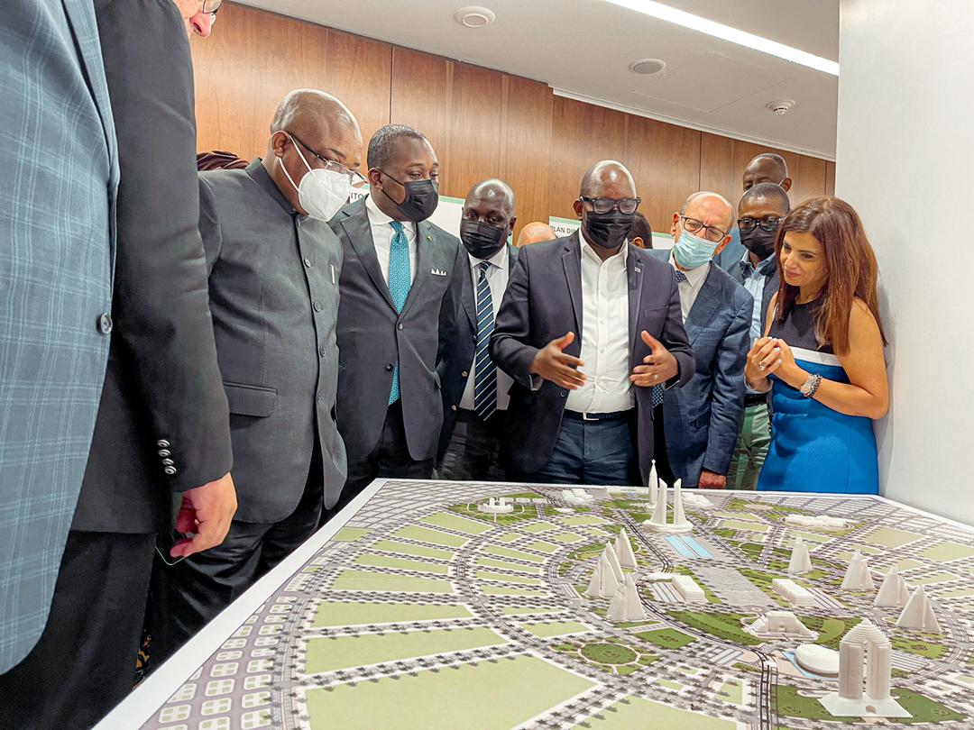 La première étape du séjour égyptien du Premier Ministre Jean-Michel Sama Lukonde, est la visite du village intelligent situé dans la province de Gizen. Là est faite la présentation audiovisuelle du plan directeur de la nouvelle ville Kitoko, où seront construits le plus grand hôpital au standard international, le palais présidentiel ainsi que le noyau industriel pour la transformation locale des produits manufacturés.