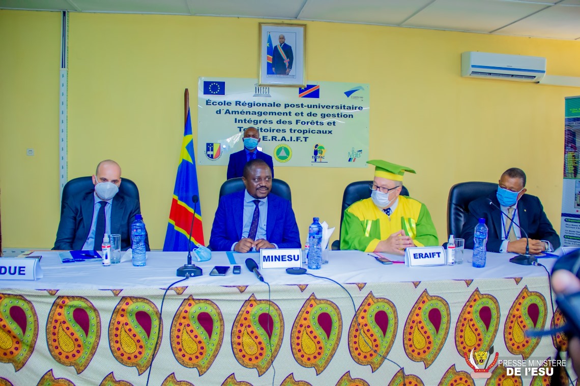 Après avoir remercié l’Université de Kinshasa (UNIKIN) qui héberge momentanément ERAFT, une école attachée à l’Université de Kisangani (UNIKIS) et qui sera installée à Yangambi, Province de la Tshopo,  le ministre a été informé par le Directeur de cette école, Baudouin Michel, que son alma mater a déjà formé 370 étudiants en master et produit 28 Docteurs ; avec 16 autres encore en formation. »