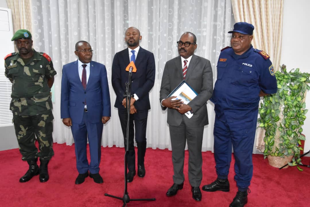 « C’est dans la suite comme vous le savez depuis plusieurs jours, le Premier Ministre a reçu habilitation, du Commandant suprême des forces armées de la République, de tenir des réunions de sécurité pour faire le suivi, de manière régulière, de la situation sur le terrain. Vous savez que nous avons des urgences humanitaires importantes sur lesquelles nous devons travailler. Parce que nous avons plus de 300 mille compatriotes qui sont dans des conditions extrêmement difficiles. Dans la réunion d’aujourd’hui, il s’est agi donc d’aborder ces questions humanitaires, mais aussi d’écouter le Vice-Premier Ministre, Ministre des Affaires Étrangères, qui a pris part au mini sommet qui s’est tenu hier à Luanda. Vous avez tous suivi le communiqué avec des engagements fermes assortis d’un calendrier pour permettre de donner une vue à l’issue de toute cette situation qui est à l’est de la République démocratique du Congo. Bien évidemment, les chefs de l’Armée et de la Police ont pu faire le point de la situation sur le terrain. On n’a pas seulement parlé de la situation à l’est mais on a aussi survolé la question de Kwamouth. Parce qu’il est important que nous puissions avoir un regard sur toutes ces situations. Le maître mot qui a été recommandé ce soir, par le Premier Ministre, au-delà de tout ce qui a été dit, de ces engagements qui ont été couchés dans le communiqué sorti hier, c’est que nous devons rester vigilants. Il y a des détails qui ont été donnés. Nous allons attendre voir ce que ça va donner. Mais nous allons surtout continuer à travailler pour apporter un appui humanitaire à nos compatriotes qui ont en besoin ».