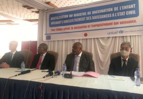 Financé à hauteur de 2,5 millions de dollars US par le Gouvernement du Japon et exécuté dans le cadre de la coopération multilatérale par le Fonds des Nations Unies pour l’Enfance, UNICEF, ce projet vise à développer et déployer un registre de vaccination numérique intégrant un module d’enregistrement des naissances sur une base pilote dans les provinces de Kinshasa, Kongo central, Kasaï central et Haut-Katanga.