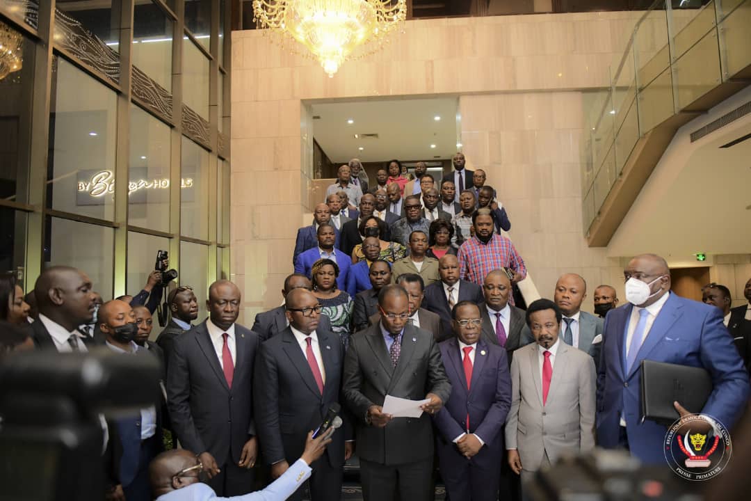 L’Union sacrée de la Nation, la plateforme politique qui soutient le Président de la République, Félix-Antoine Tshisekedi Tshilombo, l’Union Sacrée pour la Nation, représentée par ses principaux leaders et les chefs des institutions du pays, vient de rendre publique, ce lundi 8 août 2022, une déclaration politique.