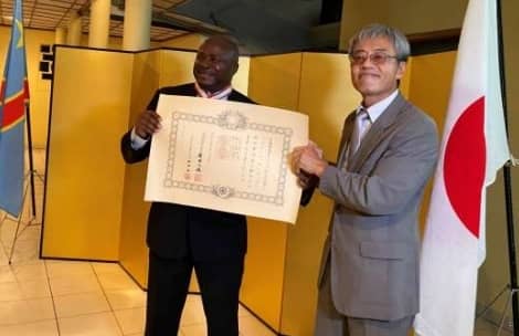 En présence de M. Gilbert Kabanda, Ministre de la Recherche Scientifique et Innovation Technologique, M. Minami Hiro, Ambassadeur du Japon en République démocratique du Congo, a procédé, le jeudi 31 août 2023, à Kinshasa, à la remise officielle de la décoration de l’Ordre du Soleil Levant, Étoile d’or et d’argent au Docteur Nteranya Sanginga, ancien Directeur Général de l’Institut International d’Agriculture Tropicale (IITA).